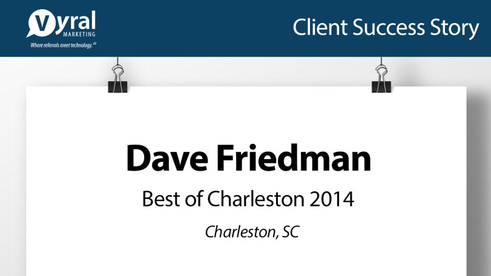 Great success story from Vyral Client Dave Friedman in Charleston, SC – he asks for an email after every conversation, makes 2 videos a month, and then calls the people watching his videos.